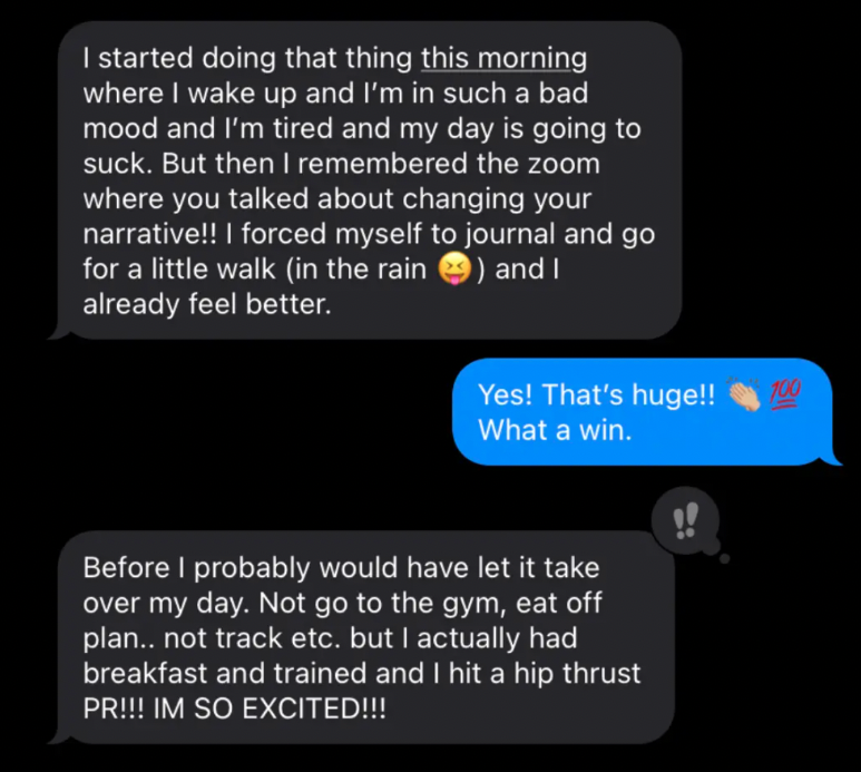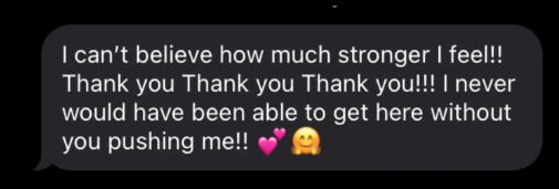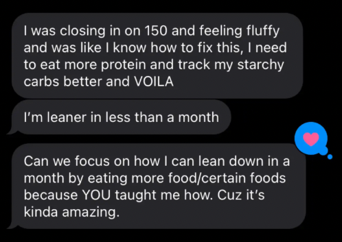 Going to the gym brings you joy, you love to push yourself! You are eating meals that you love, working with cravings and finally feel at peace with nutrition.